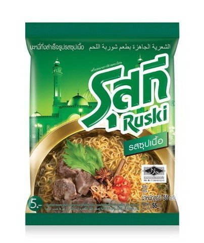 Halal Ruski Instant Noodles Stewed Beef Flavour - Pack of 6 - Description Life instant noodle product used depends on the materials for packaging and how the products are kept. Normally, instant noodles sold in Thailand within 4-6 months from the date of manufacture will be used to ensure the freshness. However, in cool places such as refrigerator, air-conditioned room or in countries with colder climates, instant noodles can be stored for up to 8-12 months. / Total energy 270 kcal (calories from fat 120 kcal) Wheat 57.57%, 13.81% palm oil, beef F, Halal Ruski Instant Noodles Stewed Beef Flavour - Pack of 6.